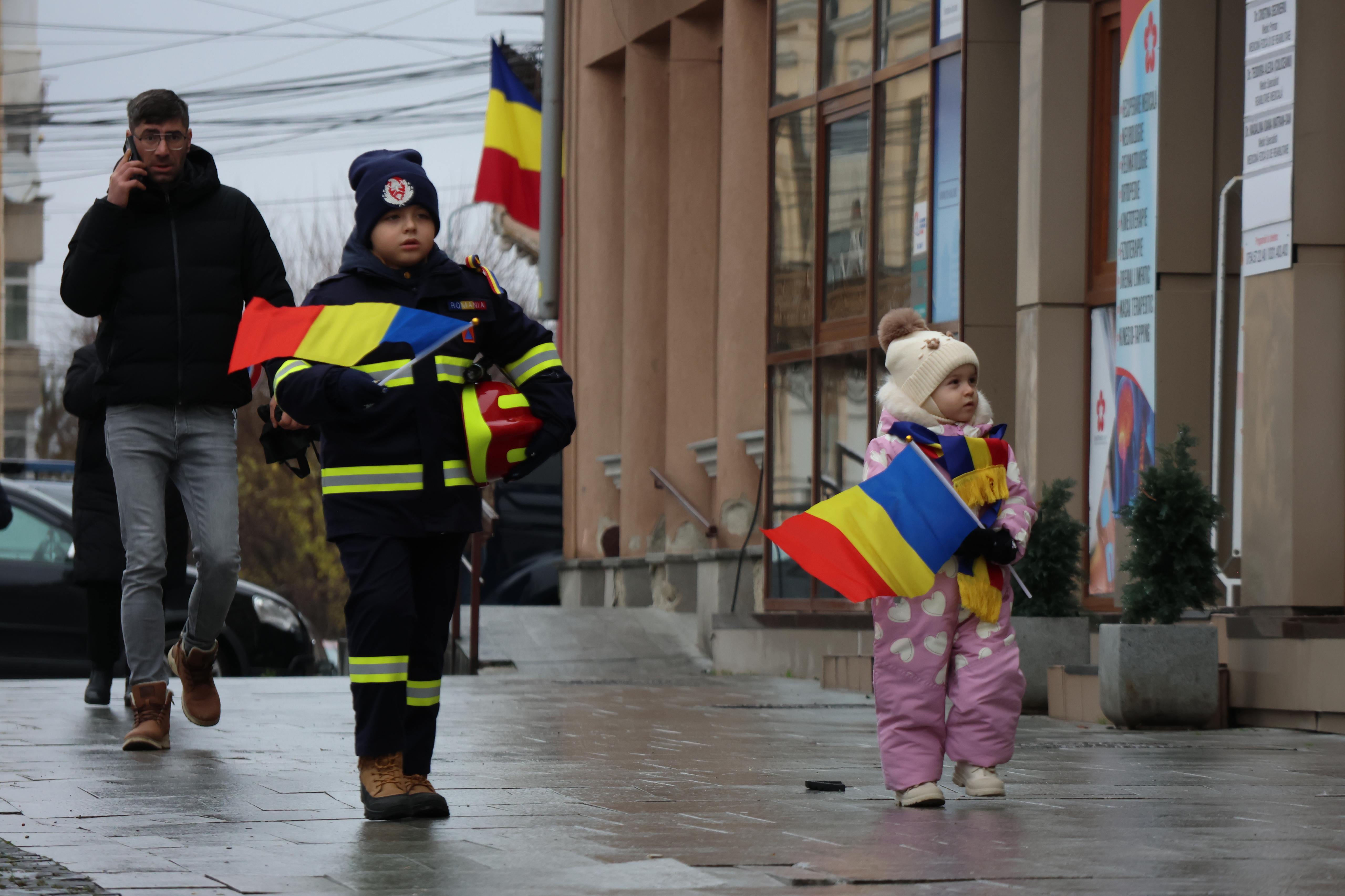 În municipiul Botoșani, Ziua Națională a României este celebrată astăzi, 1 decembrie 2025, printr-un program care reunește copii, tineri și adulți. Manifestările au loc la Monumentul Eroilor din Piața 1 Decembrie 1918, unde sunt organizate ceremonii militare și religioase. Cu stegulețe tricolore în mâini, cei mici privesc cu interes desfășurarea evenimentelor dedicate acestui moment important.
